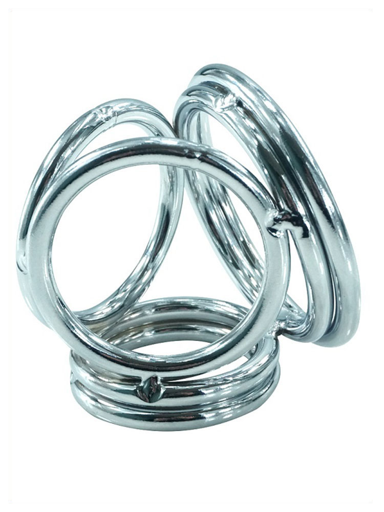 Made from body-safe metal with a stunning chrome-polish finish, this 4-Ring Metal Ball Splitter is a cock-n-ball contraption that not only makes the wearer feel sexy when it’s tightly wrapped around their intimate areas – increasing their arousal levels – but provides them with all the benefits that have made cock rings best-selling sex-aids across the industry: