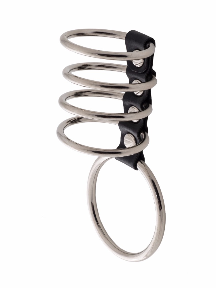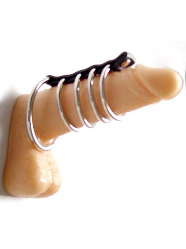 This 5-ring set requires the base ring, the largest ring, to be worn just behind the balls with the four smaller rings snugly fitting round the base of the shaft as well as quite a sizable part of the shaft itself.