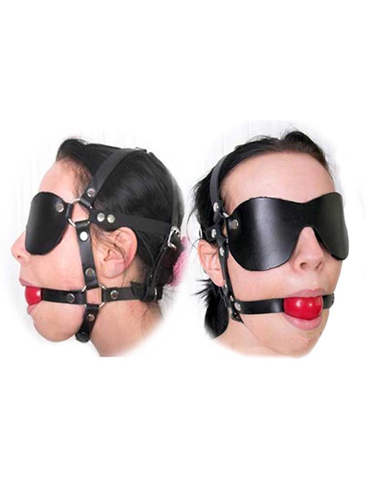 Ball Gag & Eye Mask with Leather Strapping (Head Harness)