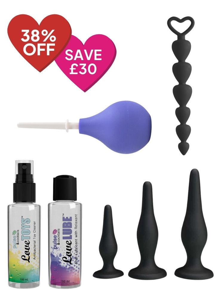 - Includes anal douche, lube, cleaner, plug set & anal beads