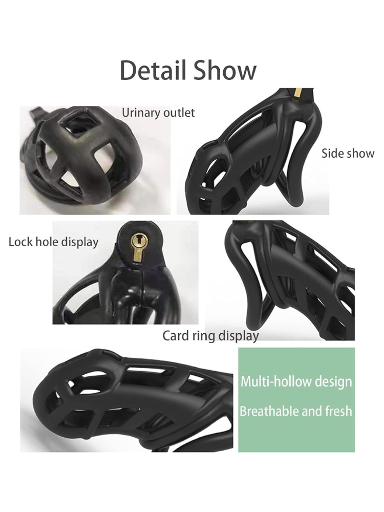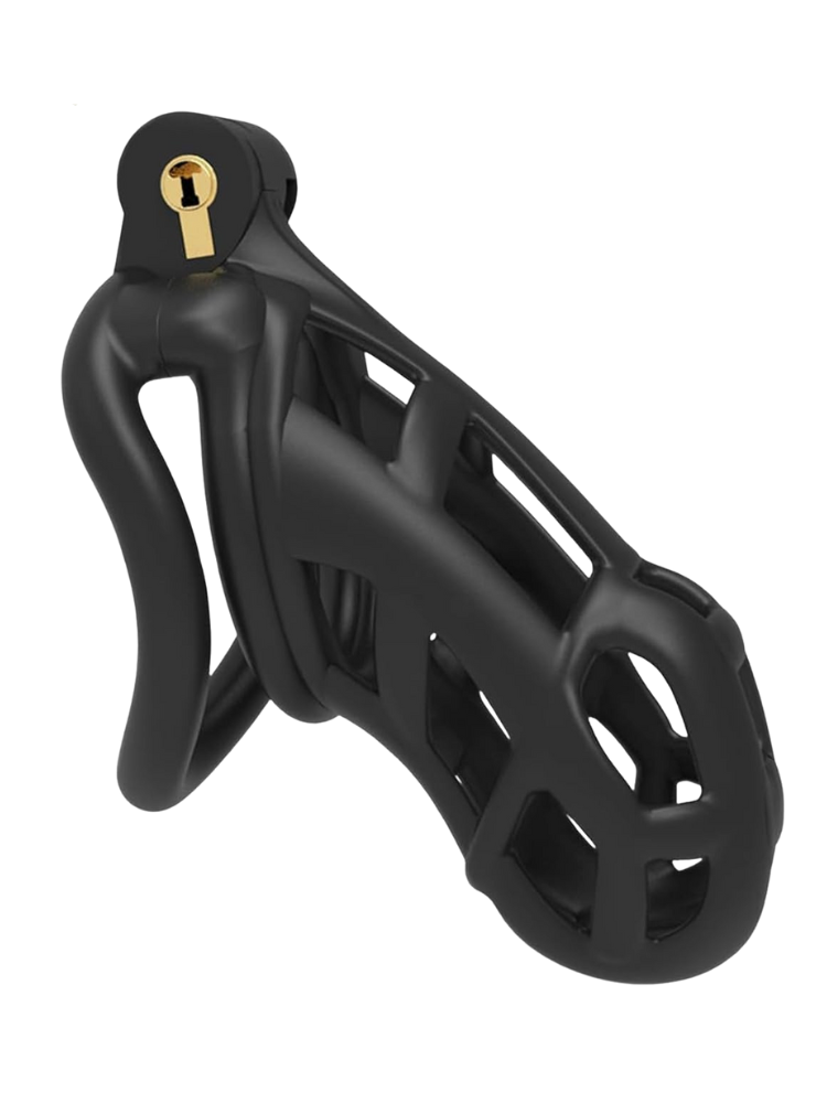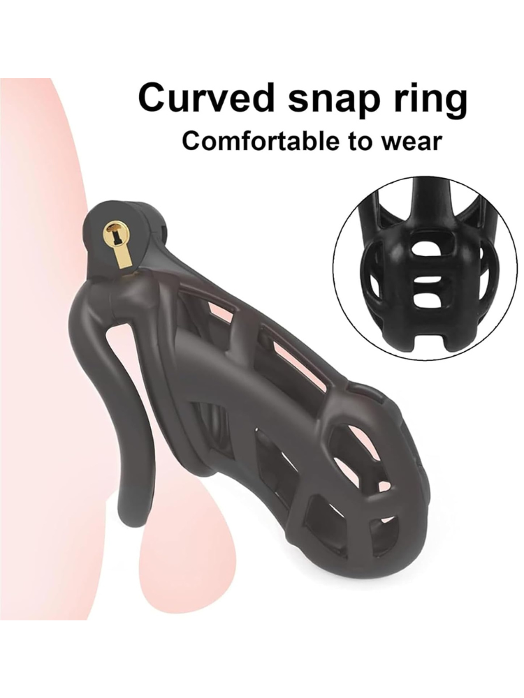 The Black Cock Chastity Cage is built for full-time wear and long-term control — whether you’re enforcing discipline, enhancing power dynamics, or exploring chastity for the first time. This sleek, matte-black cage doesn’t just imprison arousal — it frames it for your viewing pleasure. Crafted from lightweight, body-safe plastic, this breathable cage features a multi-hollow design that ensures constant airflow and hygiene, even during extended lock-ups. The curved snap ring and ergonomic design make it surprisingly comfortable, so you or your submissive can wear it discreetly under clothing for hours… or days.