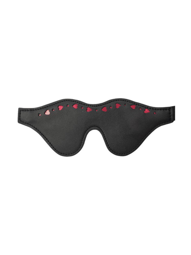Black Leather Eye Mask/Blindfold with Red Hearts