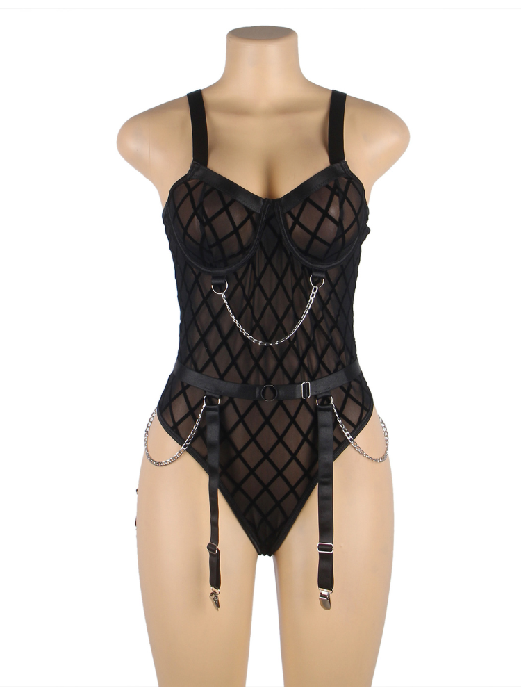 Black Mesh Chain Lingerie Bodysuit