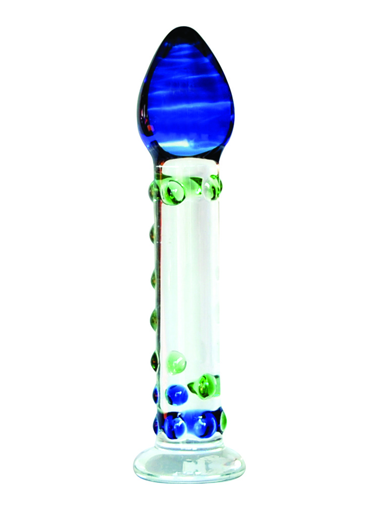 Blue And Green Dotted Glass Dildo 6.5 Inch