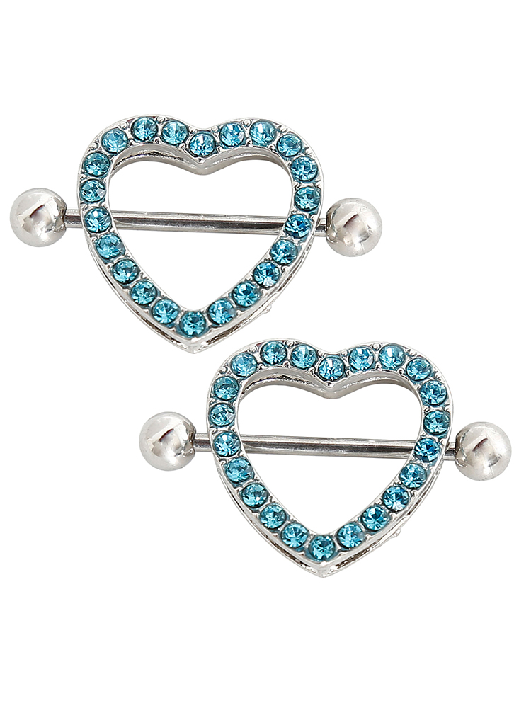 Blue Gem Heart Nipple Piercings