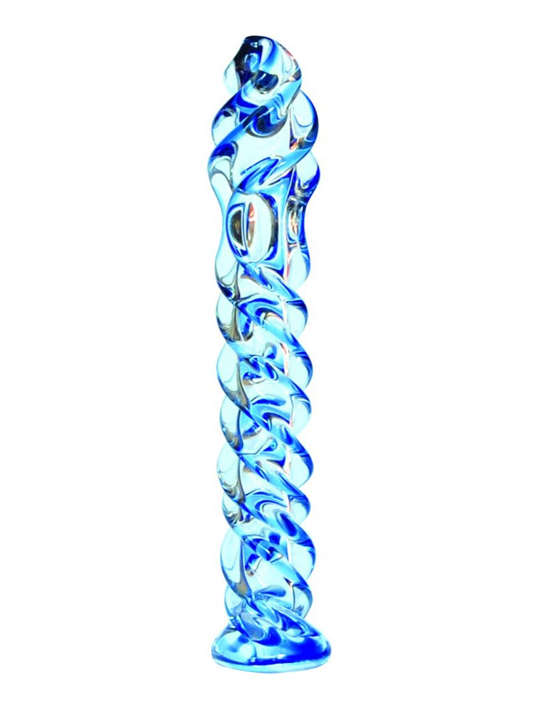 Premium quality glass, ocean blue twister dildo. This clear glass dildo with a deep blue head is perfect for some adventurous fun. The blue twisted shaft allows for a whole new and intense experience when it comes to exploring those intimate areas. At the base there is also a flat surface so that this toy can be experienced in a more hands-free way. The unique thing about these glass toys is that you can alter the temperature – hot or cold. Put it in some hot water to heat it up or in the fridge to cool it down. It is a really versatile toy that you can have any way you like.
