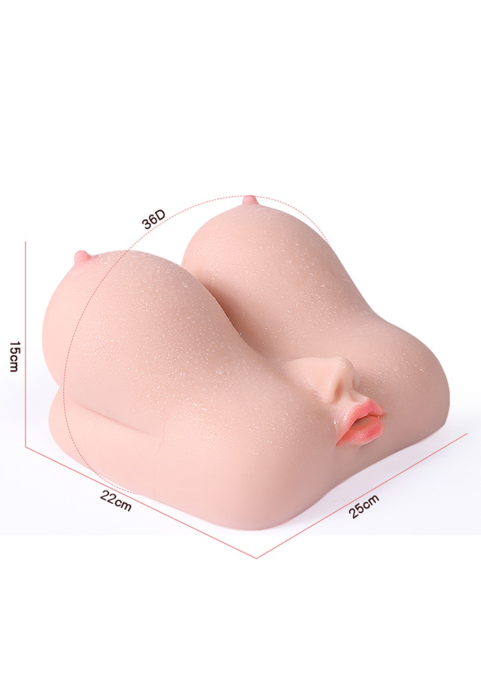 In the middle lies a snug, textured vaginal canal with multiple internal chambers lined with stimulating nodules and ridges. It’s elastic, easy to grip, and designed to embrace you tighter with each stroke. Whether you prefer breast play, mouth fantasy, or deep vaginal pleasure, this 3-in-1 design provides options to satisfy all your desires.