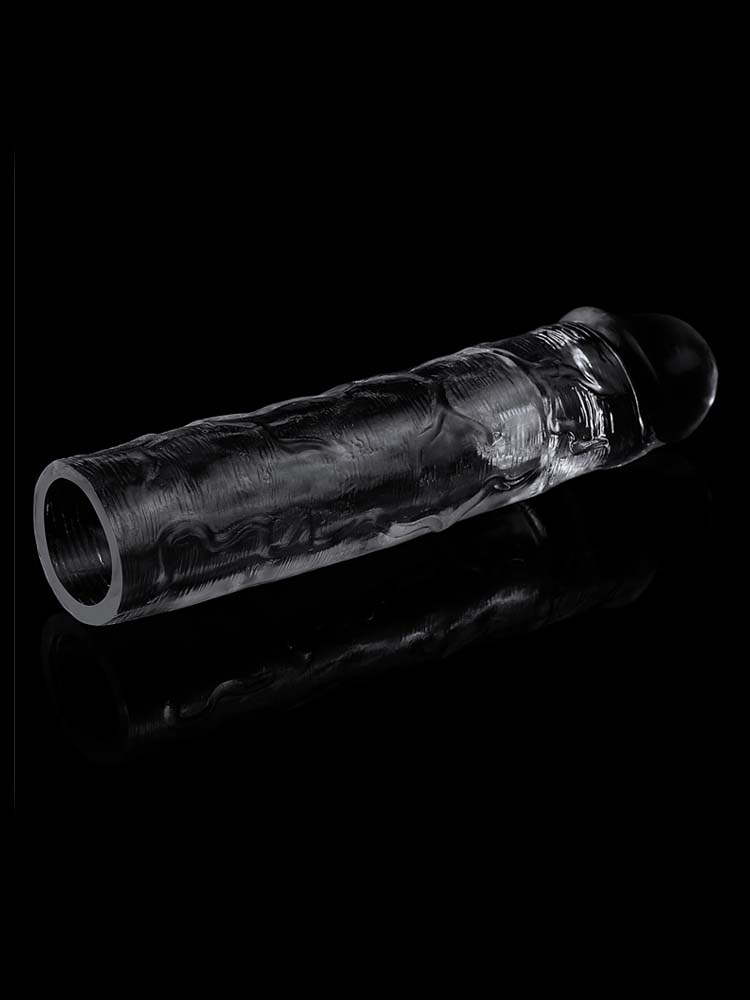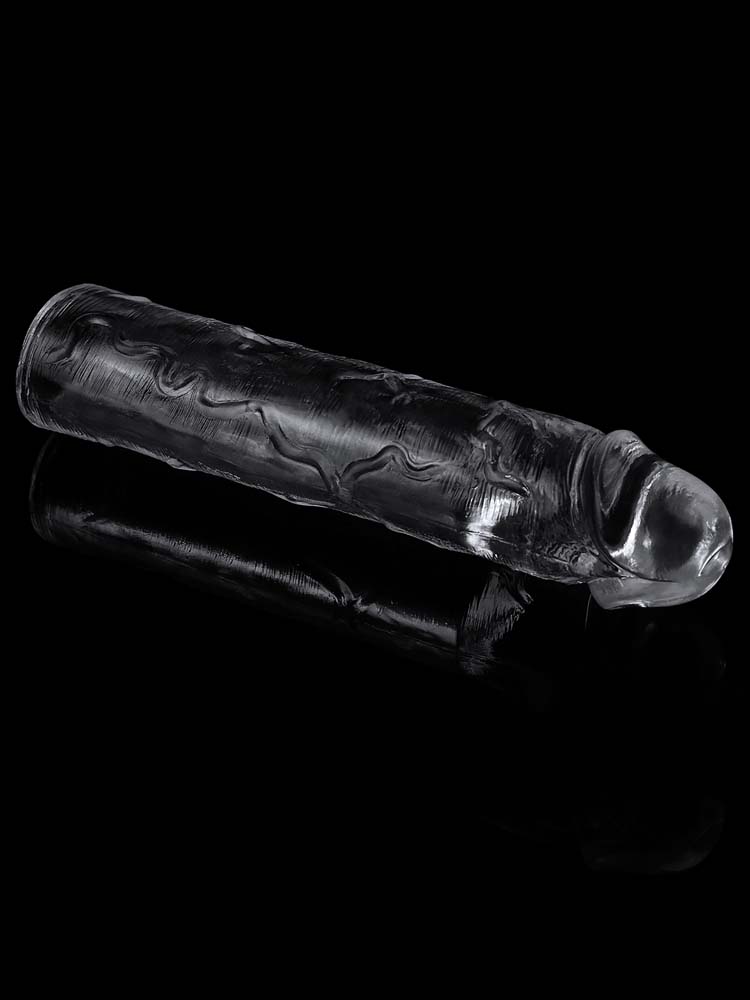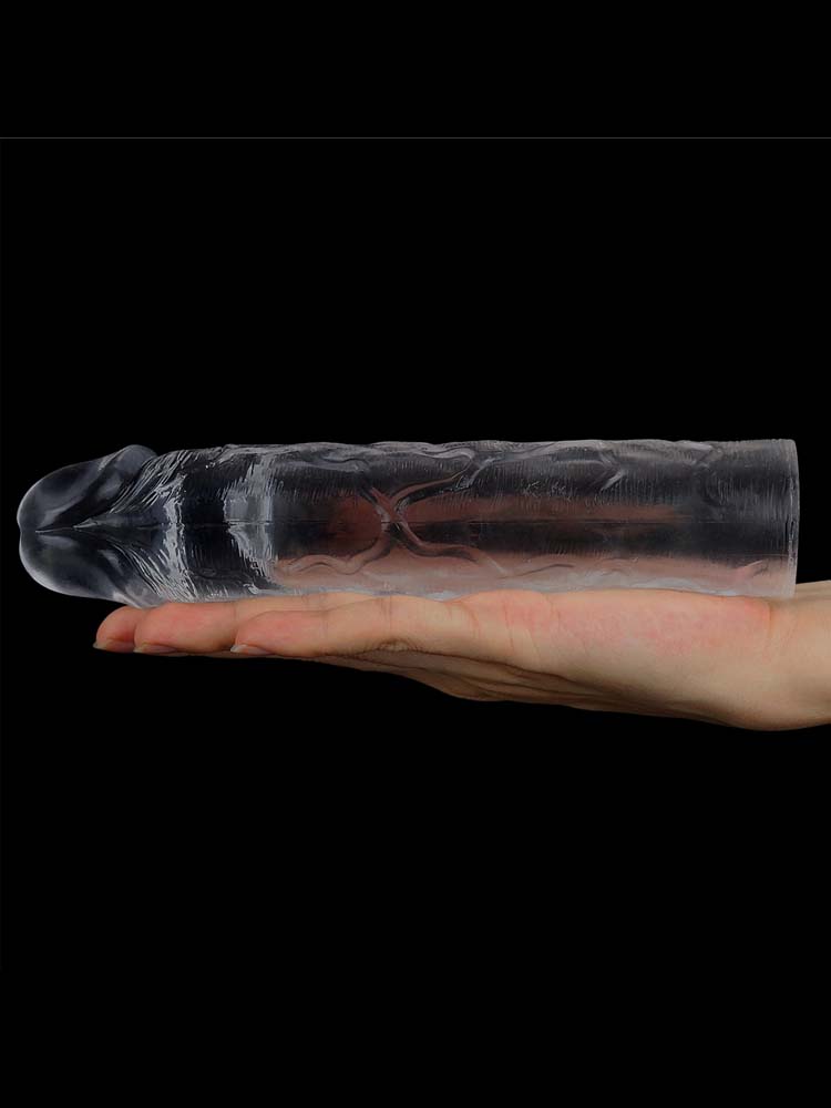 Boost your size and confidence instantly with the Clear Penis Extension Sleeve, designed to add an extra 2 inches of length while enhancing girth and staying comfortably snug. Made from soft, flexible, transparent material, this sleeve blends realism with performance — allowing you and your partner to see the action while feeling every satisfying thrust. The sleeve slips on easily and stays securely in place, enhancing sensation for both partners. The internal texture gives the wearer added stimulation, while the firmer tip provides targeted pleasure for your partner. Whether you’re exploring edging, size play, or simply want to elevate your intimate moments, this extension sleeve is built to please.