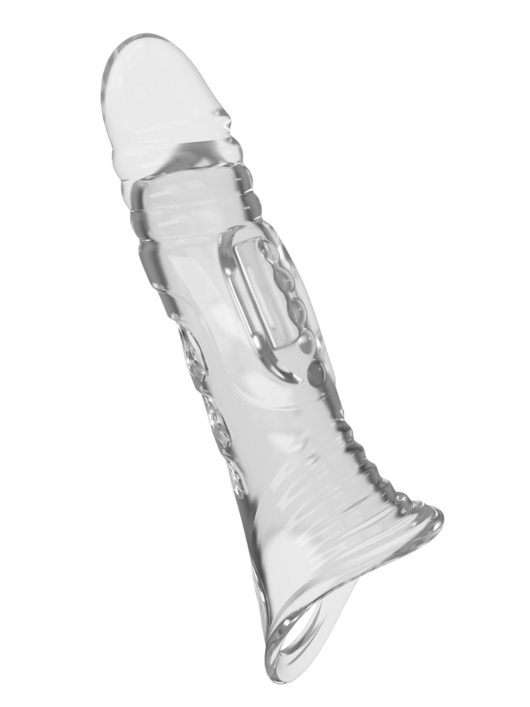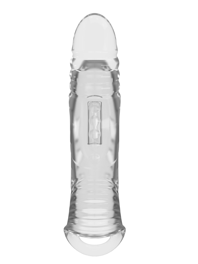 Take your playtime to new dimensions with this Clear Penis Sleeve Extender, designed to boost both your size and stamina. Made from ultra-soft, stretchy material, it slides easily over your shaft to add up to 1.6 inches of length and extra thickness. The realistic tip delivers natural-looking extension, while the textured shaft and raised nubs provide delicious stimulation for your partner with every thrust. The snug-fitting base keeps it secure during play, while the clear finish lets you stay in view for that natural, erotic look. Perfect for couples who want to explore new sensations, this penis sleeve gives you the confidence and power to go longer, harder, and deeper.