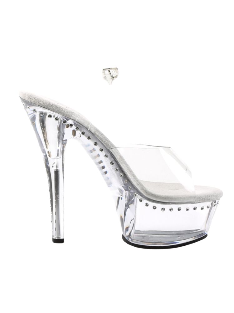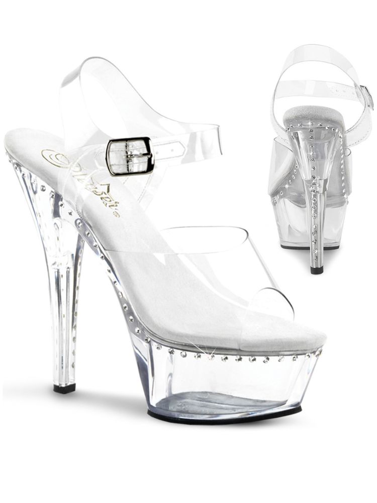Clear Rhinestone Platform Sandals – 6 Inch Heel with Ankle Strap (4-7)