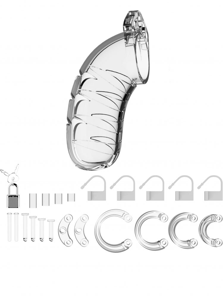 Clear Striped Slits Man Cage Chastity Kit 4.5 Inch
