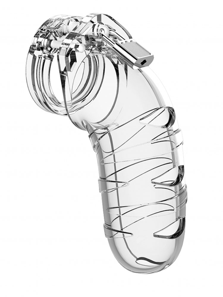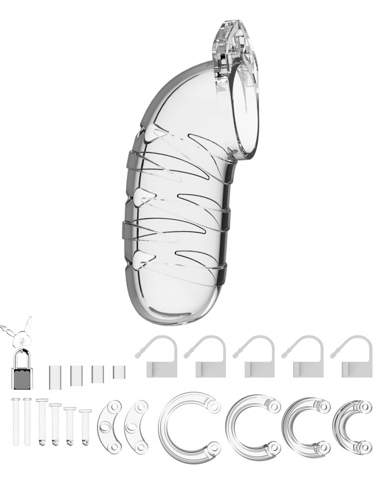 Clear Striped Slits Man Cage Chastity Kit 5.5 Inch