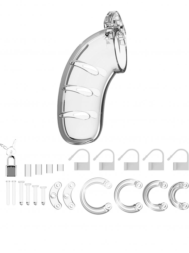 Clear Teardrop Slits Man Cage Chastity Kit 4.5 Inch