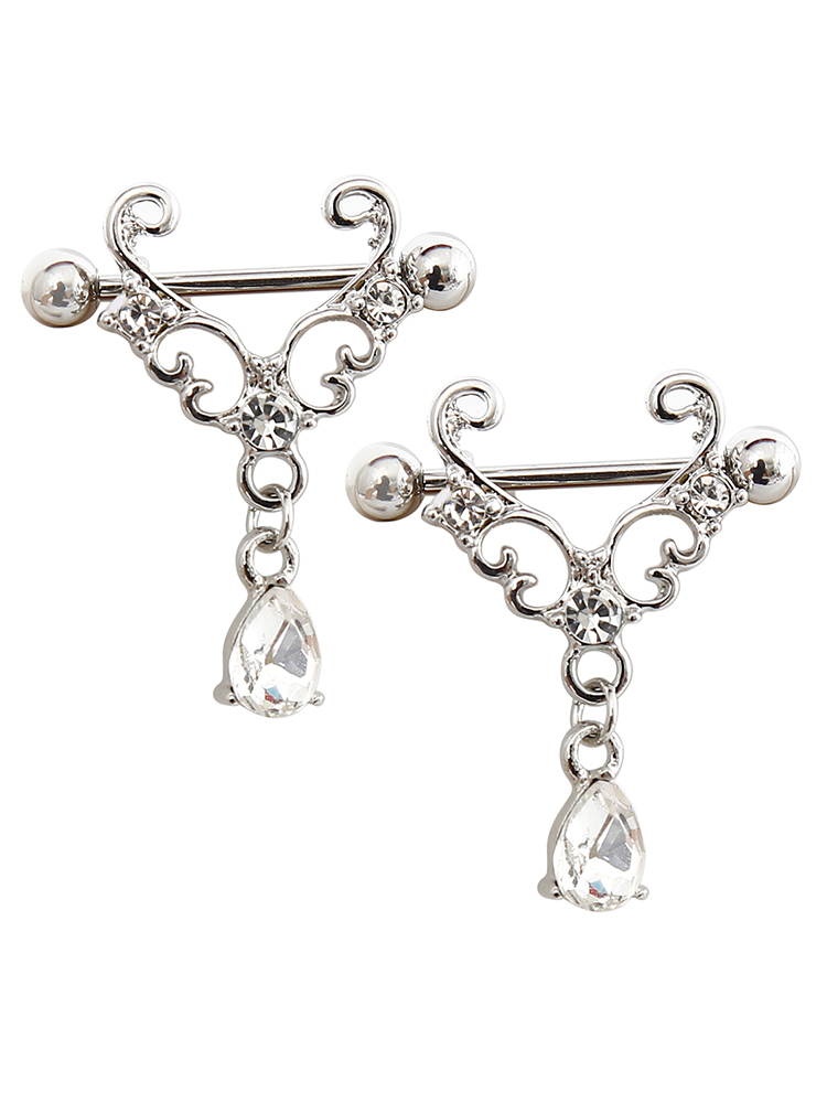 Dangling Gem Ornate Nipple Piercings