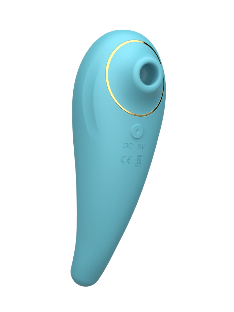 Get ready for a double dose of delight. The Delight Suction Stim Vibrator in blue is your two-in-one fantasy toy—combining gentle airwave suction for the clitoris with a curved ergonomic handle perfect for internal exploration. Whether you crave fluttering clitoral kisses or deep G-spot pressure, this toy has you covered. On one end, the soft silicone suction cup delivers airwave stimulation designed to mimic the feel of oral sex—light, teasing, and totally toe-curling. Flip it around, and the elegantly curved body becomes a sculpted G-spot massager with rumbly vibrations and a satisfyingly firm touch. With 6 pleasure modes ranging from soft pulses to deep taps, you’re in control of your journey. The seamless silicone feels silky against the skin, while the quiet motor keeps things blissfully discreet—perfect for solo sessions, steamy partner play, or sneaky indulgence under the covers.