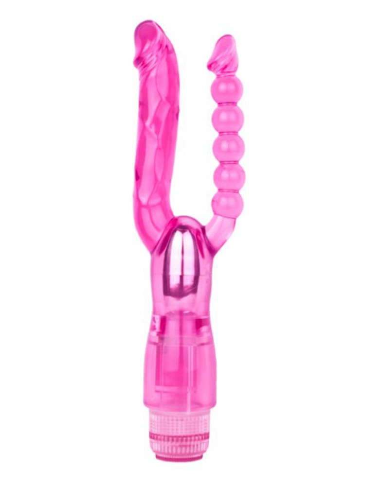 This jelly double-penetration multi-speed vibrator has two flexible probes, one for the front and one for the rear.
