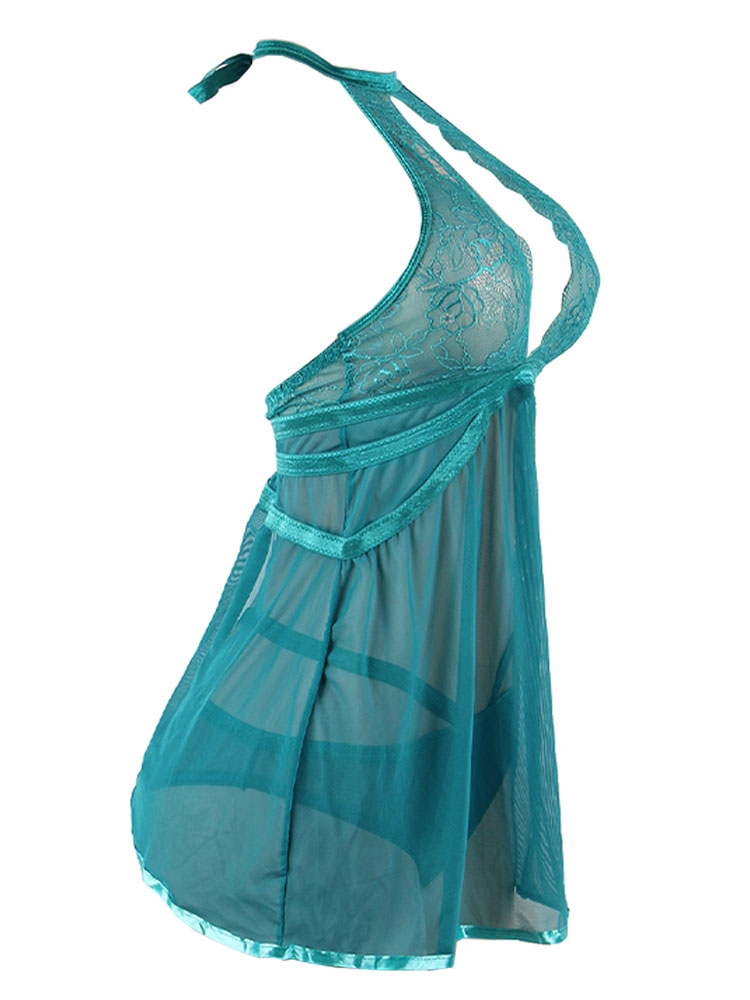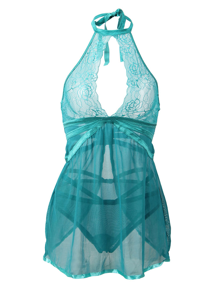 Elegant Green Lace Backless Babydoll