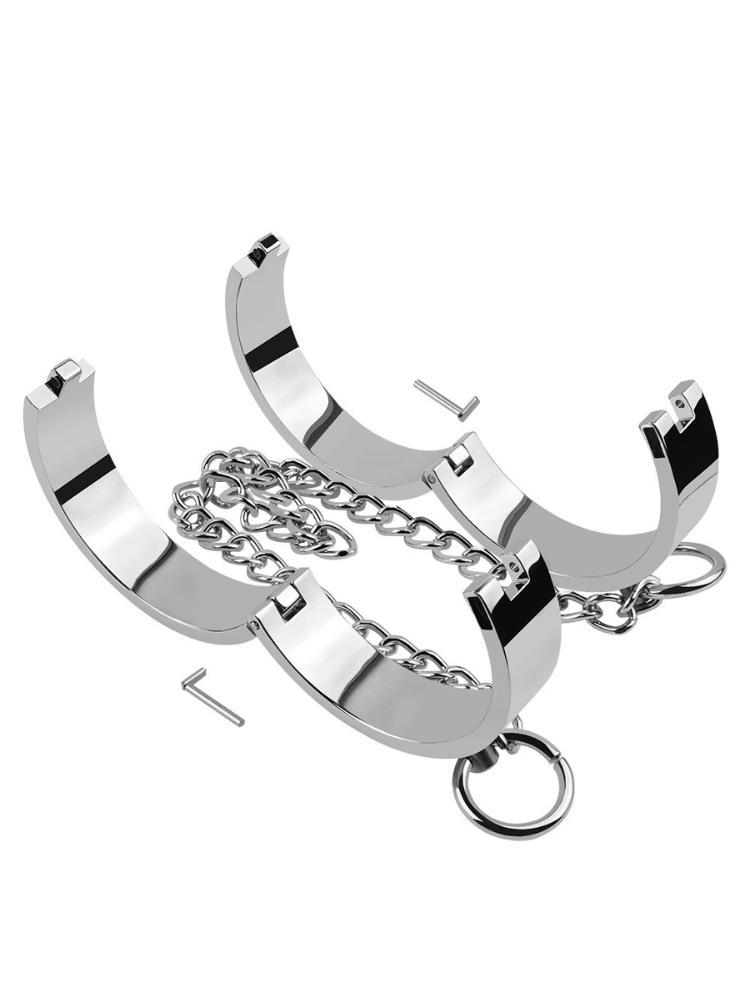 Add a blindfold, leash, or matching collar, and you’ve got a full metal fantasy at your fingertips. Or simply let the cold kiss of steel and the clink of chain do all the talking.