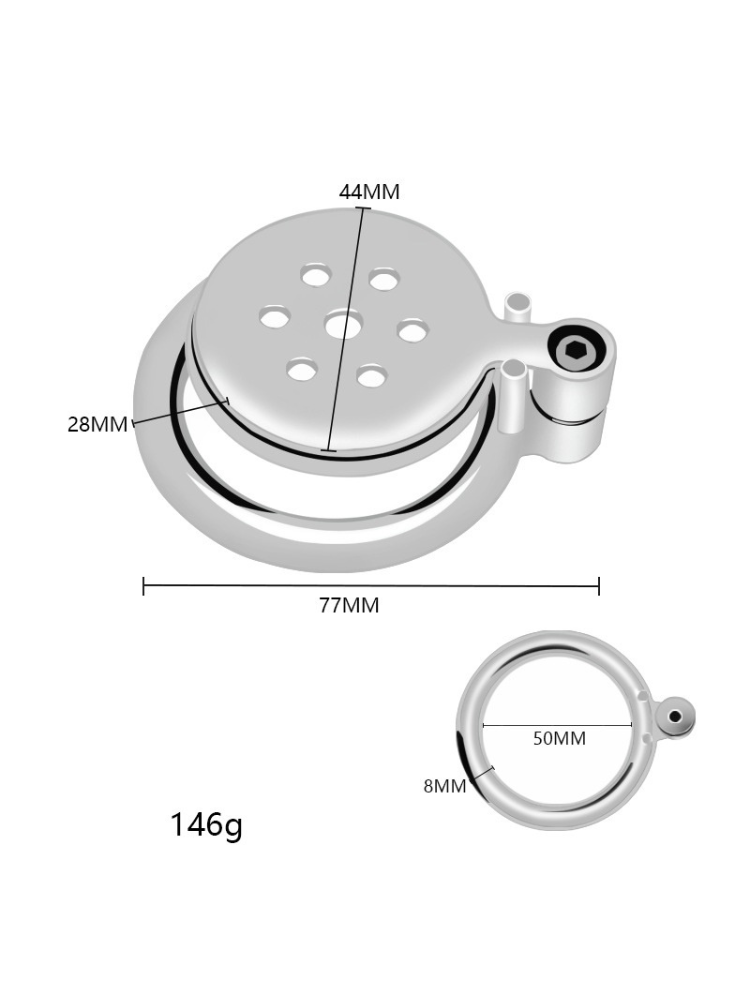 Ready to surrender your sissy urges to something firm, final, and utterly inescapable? The Sissy Lockdown Plug Hole Chastity Cage is a gleaming, full-coverage steel chastity device designed to feminize your fantasies and enforce beautiful, humiliating submission. Whether you’re in sissy training, serving a strict Dom/me, or living in obedient chastity, this disc-style cage leaves no doubt: your pleasure is no longer yours. Crafted from high-polish stainless steel, this elegant device replaces your manhood with a flat, featureless disc — evoking control, exposure, and permanent denial. The plug-hole front includes multiple small ventilation holes to allow for hygiene and urination, but blocks all touching, teasing, or temptation. There’s no room for erections, no shape left to show — just a sleek, steel reminder that you’re locked… and lovely.