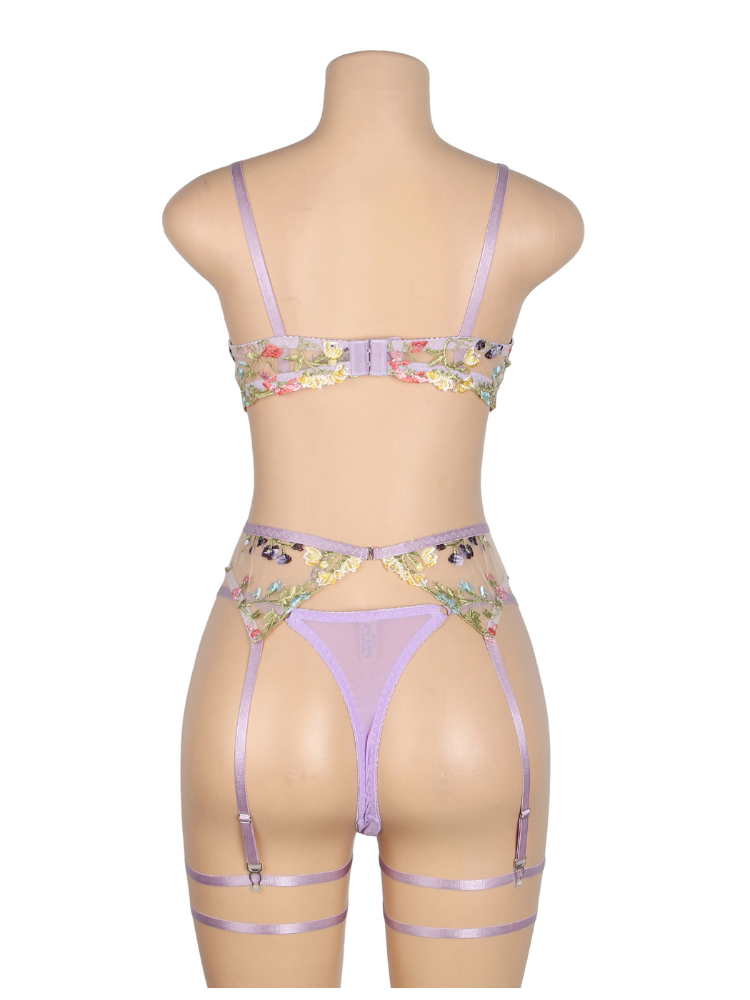 Floral Embroidery Lace Bra Set