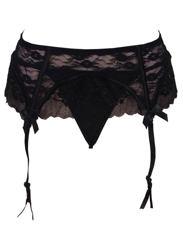 Floral Lace Suspender Panty with Thong