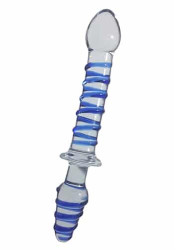 Glass Double Ended Dildo Butt Plug Blue Swirl 5 Inch
