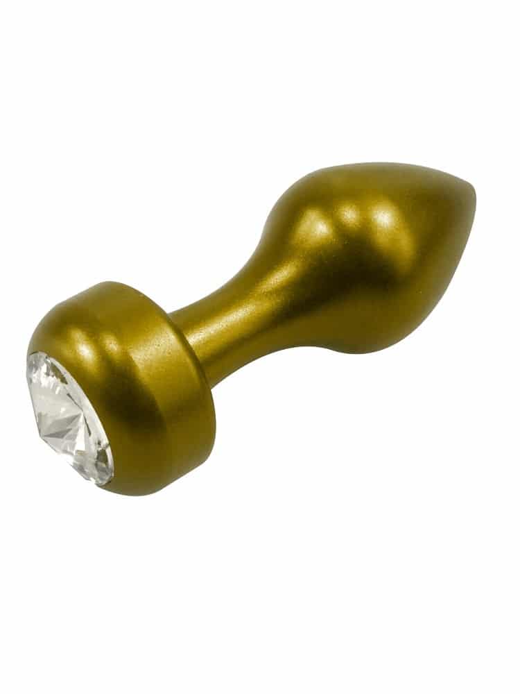 Gold Lightweight Metal Butt Plug with Faux Jewel 3 Inch