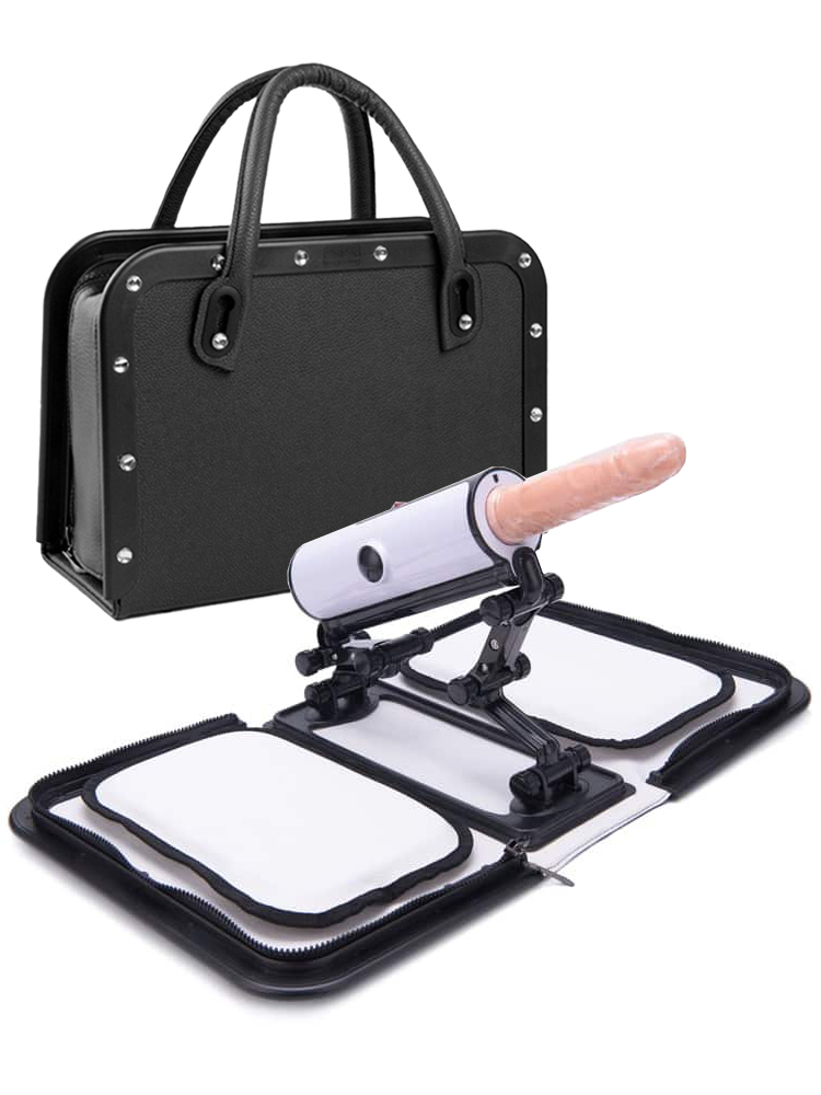 Handbag Sex Machine with Thrusting Vibrating Dildo – Black