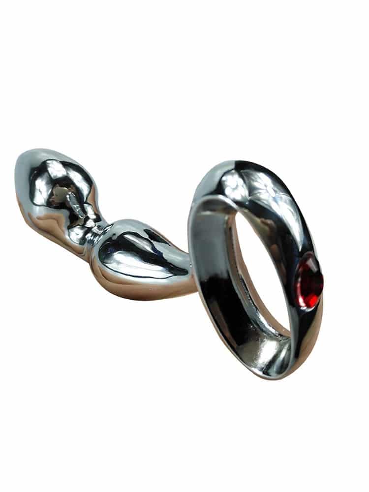 Heavyweight Curved Metal Prostate Massager with Faux Red Jewel – 3.5 Inch