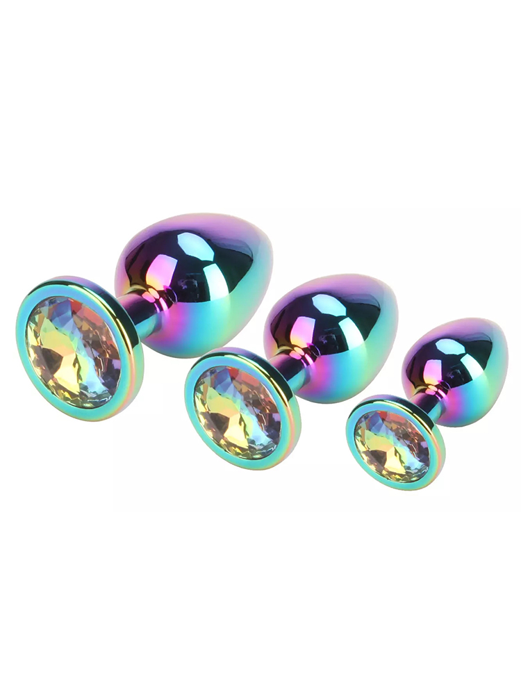 Jewelled Rainbow Metal Butt Plug Set