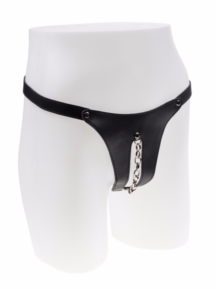 Open-crotch underwear is all about easy access, that concept is turned on its head with these gorgeous, adjustable, black Leather G-String/Chastity Pants – designed to ensure that your lover does not get any pleasure until you decide they can. Ideal for first-timers curious to explore the fetish of sexual denial but feel they aren’t quite ready to go under ‘lock and key’.