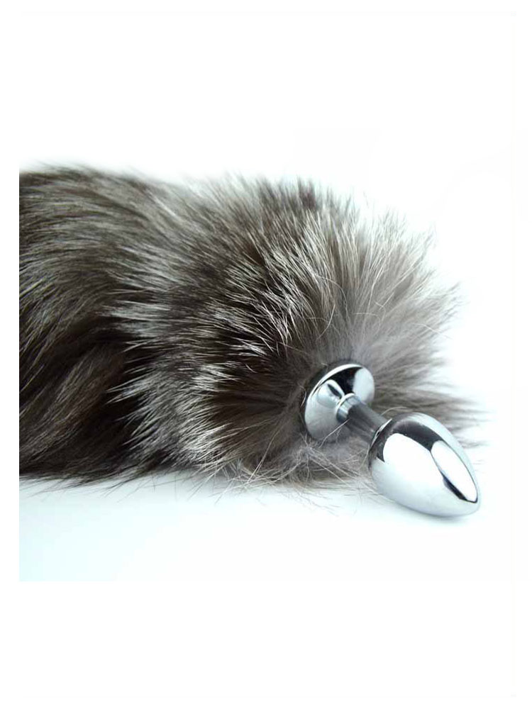 Attached to the base is a luxurious 13-inch faux fur tail in soft grey tones blending into darker shades. Full, fluffy, and beautifully tactile, it sways with your movement and brushes lightly against the skin — a sensual, visual treat for you and your partner.