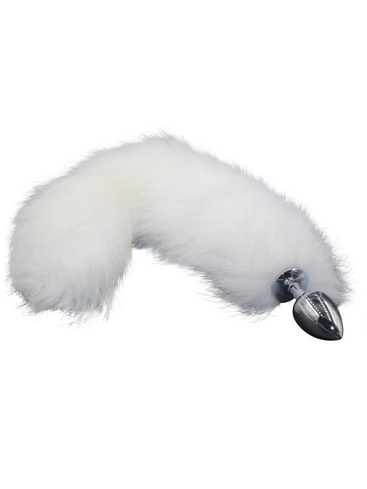 Lightweight Metal Butt Plug with White Faux Fur Tail 2.5 Inch