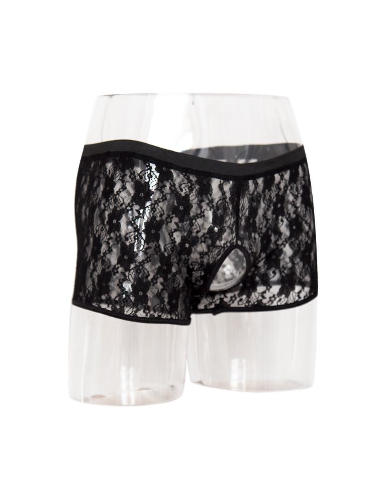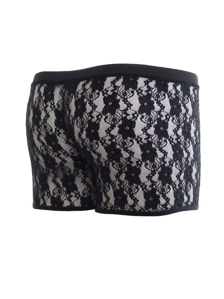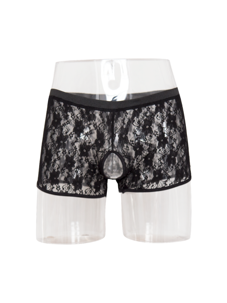 Delicate, daring, and irresistibly seductive, the Men’s Black Lace Open Crotch Shorts are designed to combine comfort with bold erotic appeal.