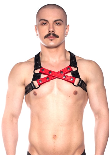 Men’s Prowler Red Cross Strap Leather Chest Harness