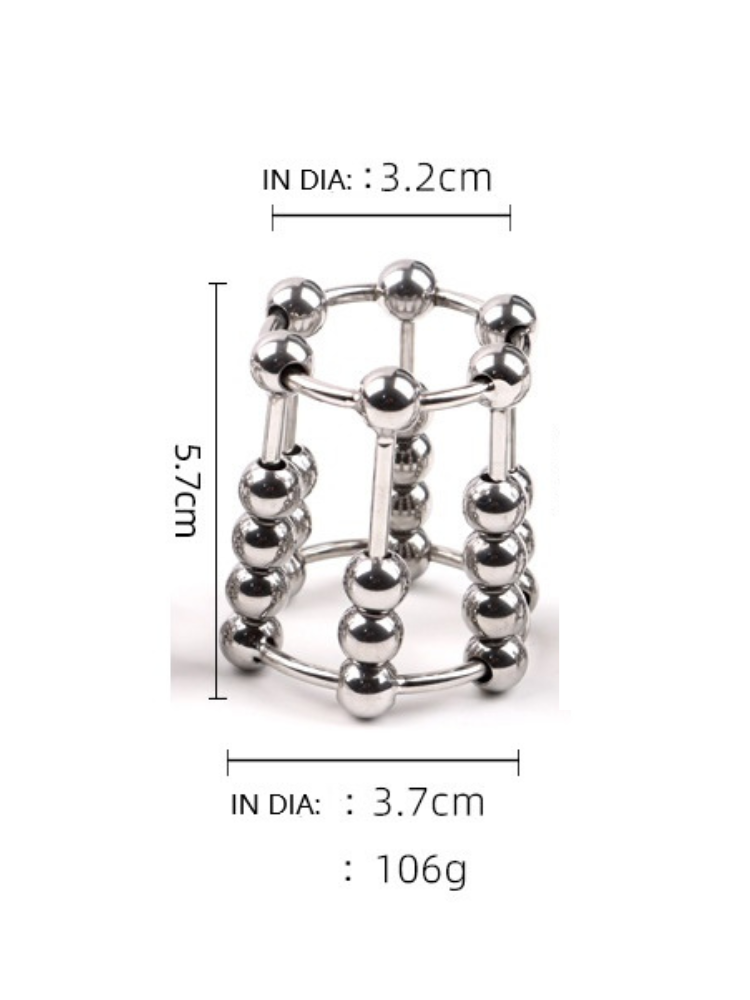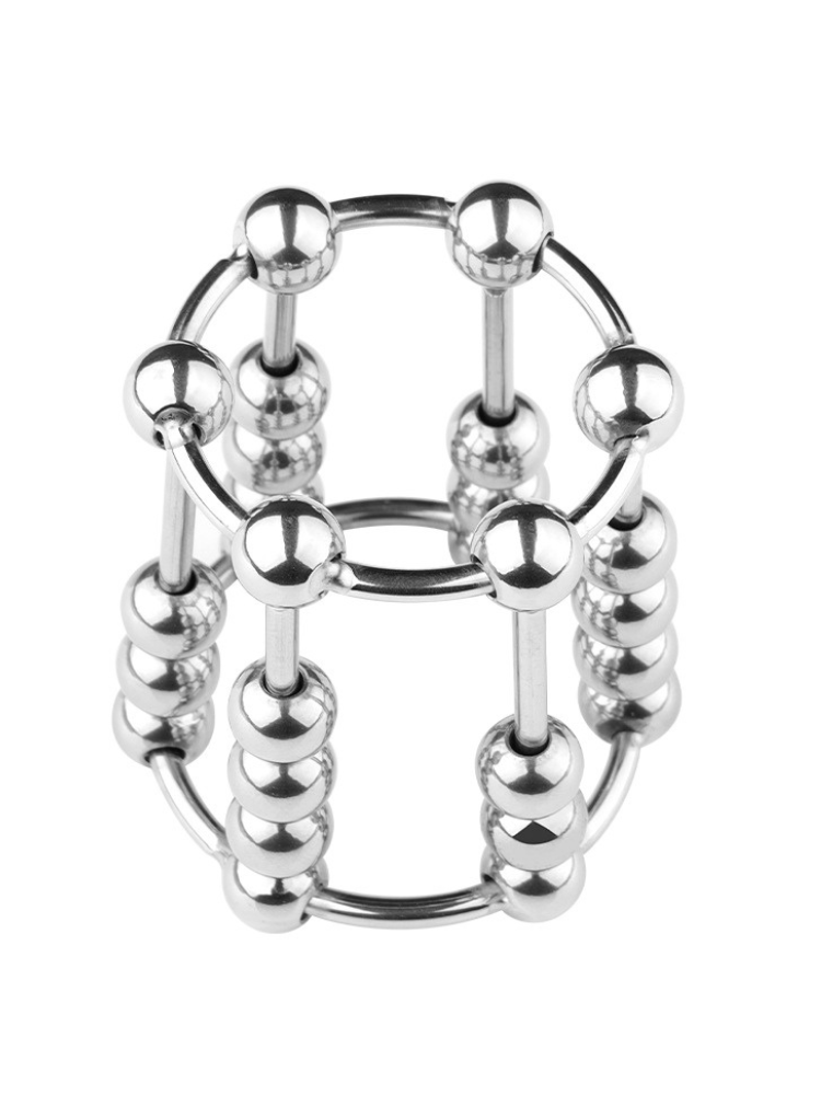 This uniquely engineered stainless steel beaded cock cage combines visual intensity, physical weight, and tactile stimulation in one serious piece of hardware. Designed to encase the shaft snugly, this cage features rows of massage beads aligned to provide continuous stimulation while adding a solid sense of restraint. Crafted from stainless steel, this device is smooth, non-porous, and easy to sterilize. The open-frame design allows airflow and visibility while applying even pressure around the shaft. Whether used for intense edging, chastity training, or aesthetic appeal, this cage elevates your experience with unmatched structure and sensation.