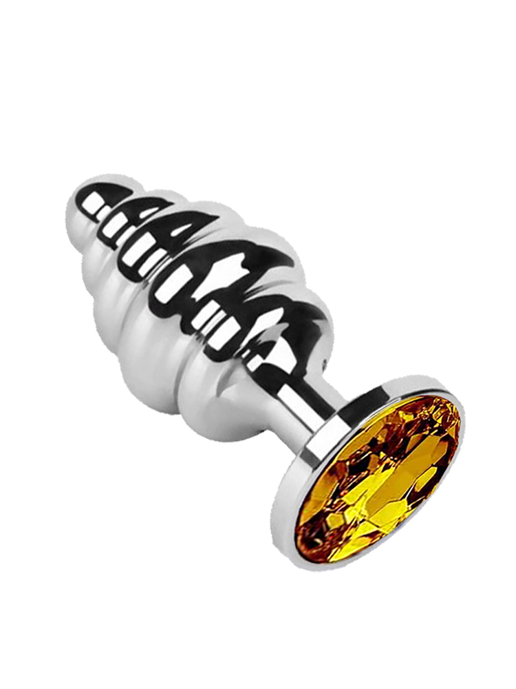 Small Metal Ribbed Butt Plug with Jewel 2.5 Inch
