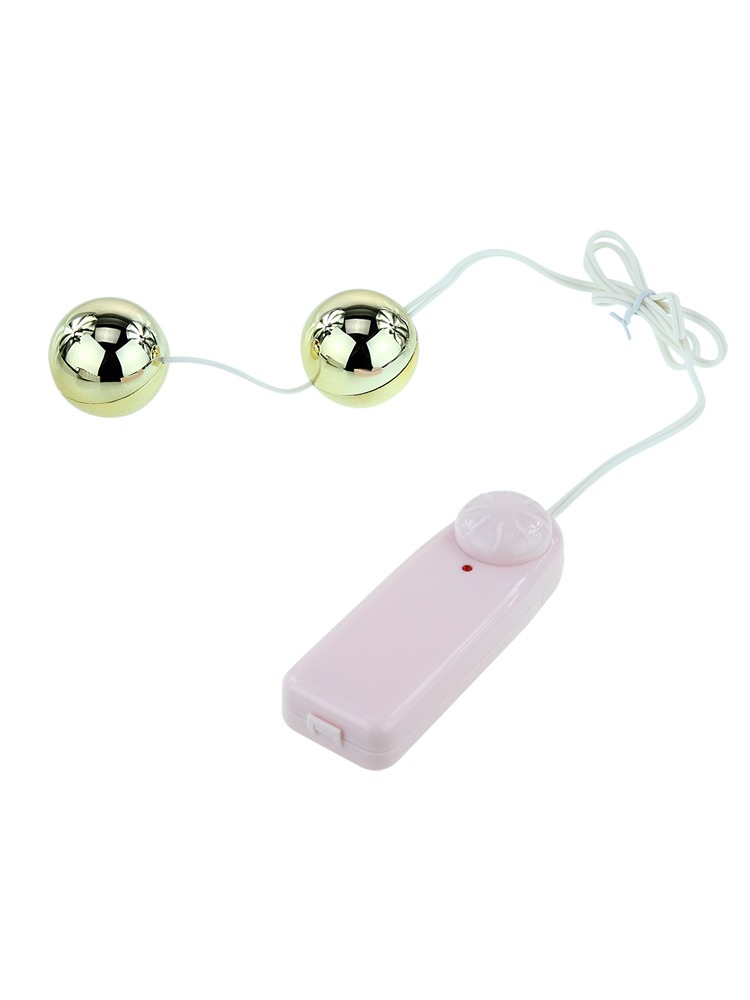 A set of golden vibrating multi-speed love balls operated from a wired remote control, the speed is easily adjusted with the simple to use scroll dial.
