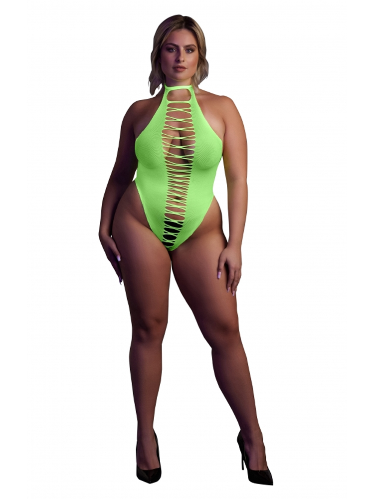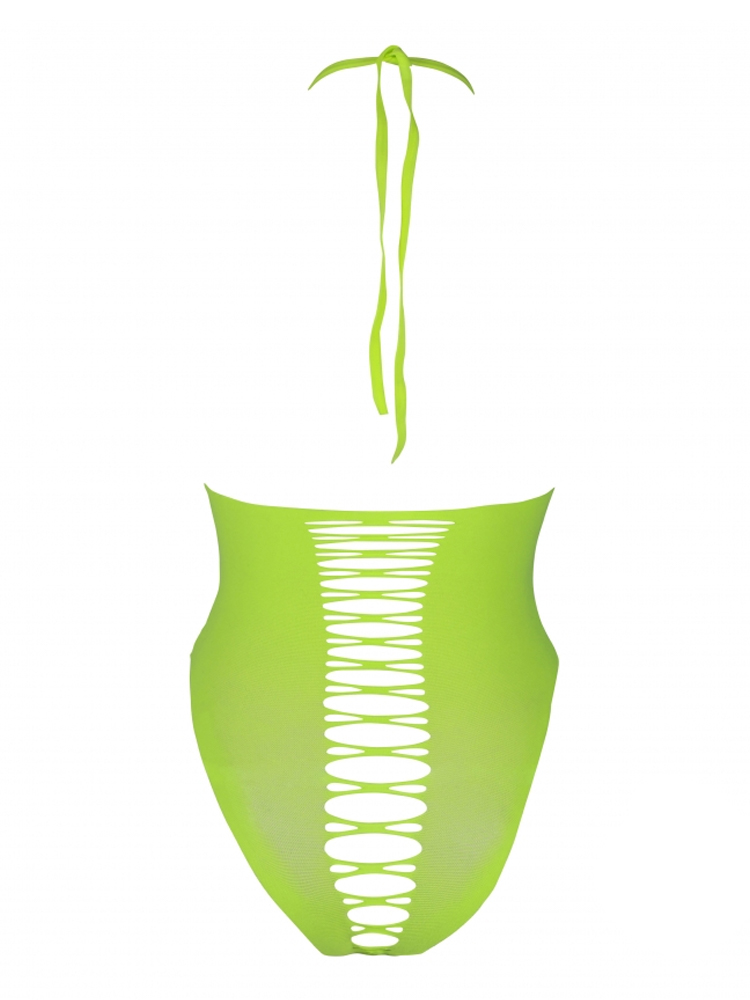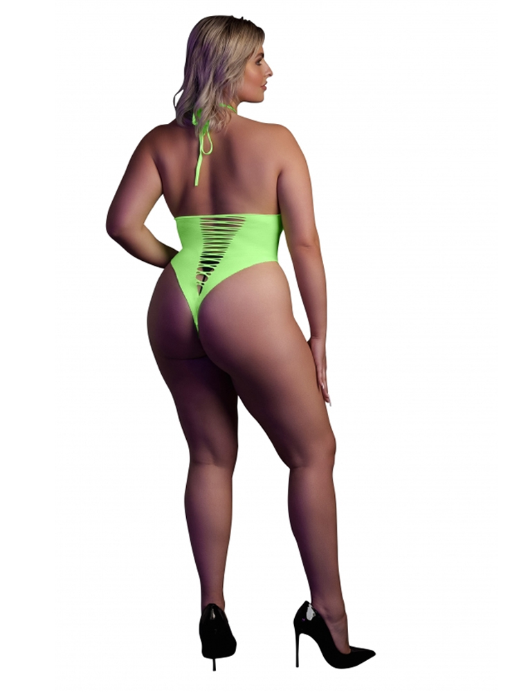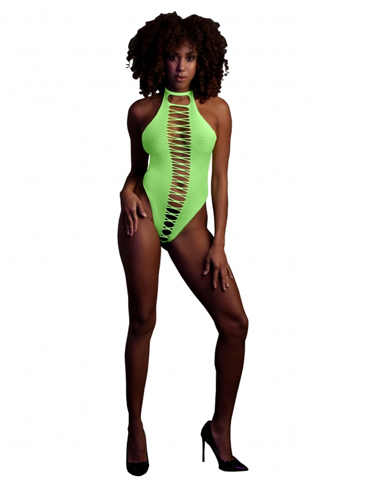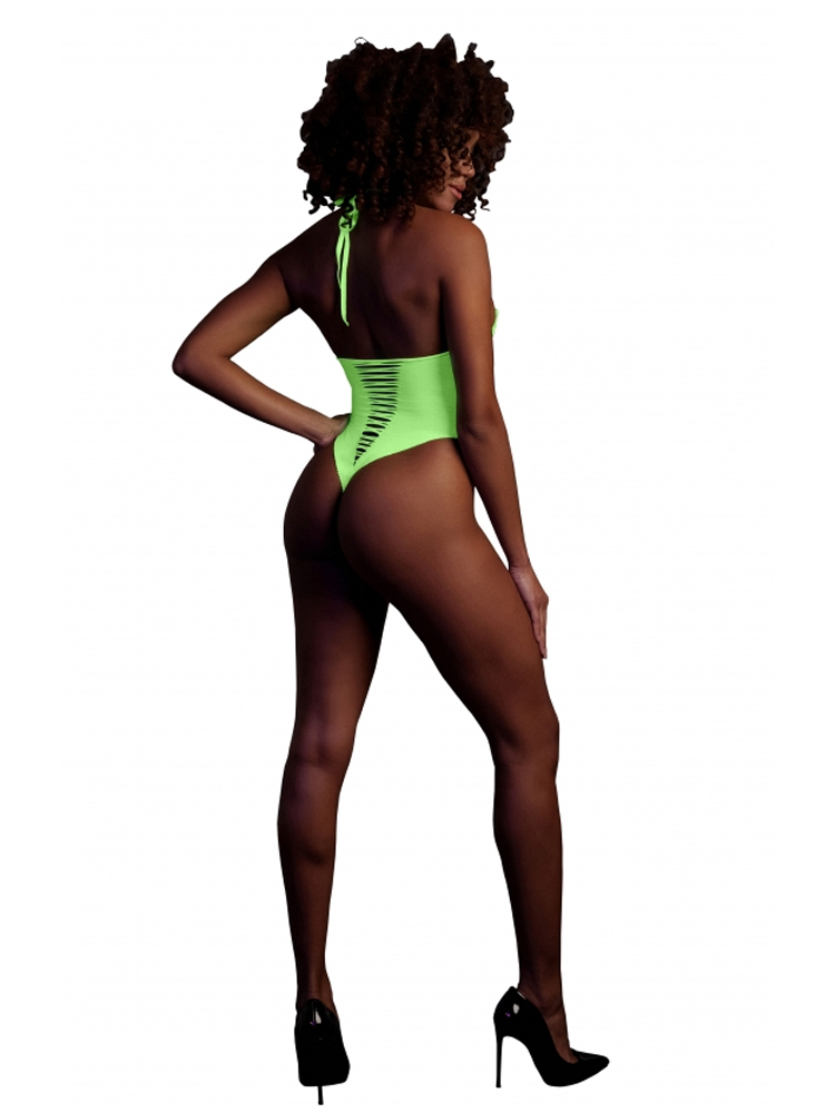 Glow In The Dark Neon Green Halter Neck High-Cut Body