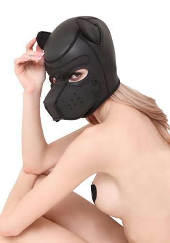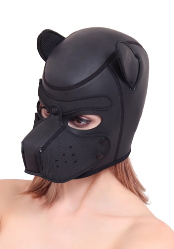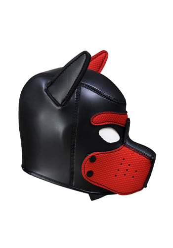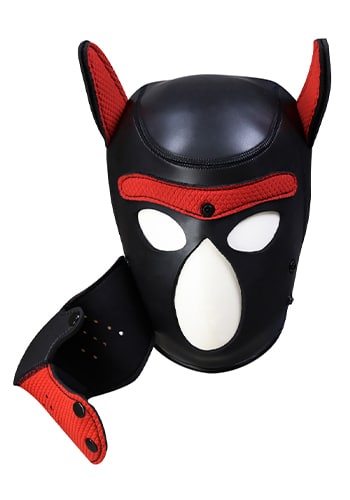 Neoprene Puppy Hood Mask in Black and Red
