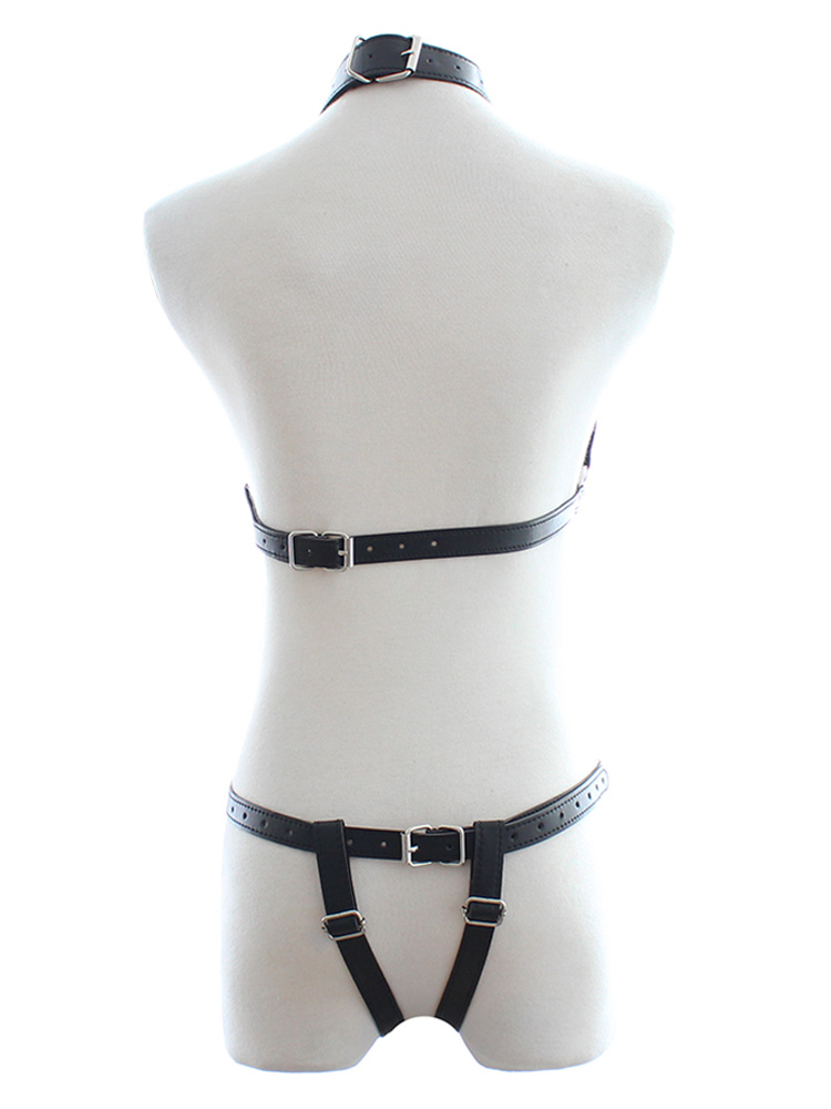 Open Chain Faux Leather Bikini