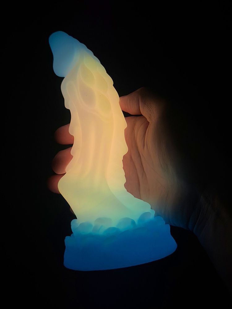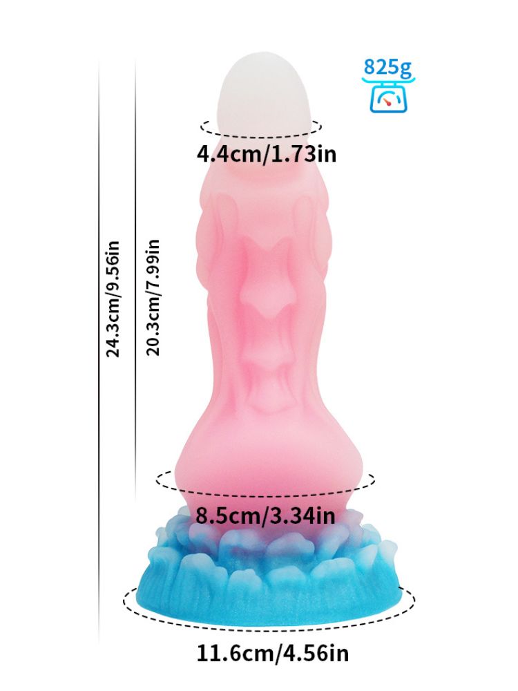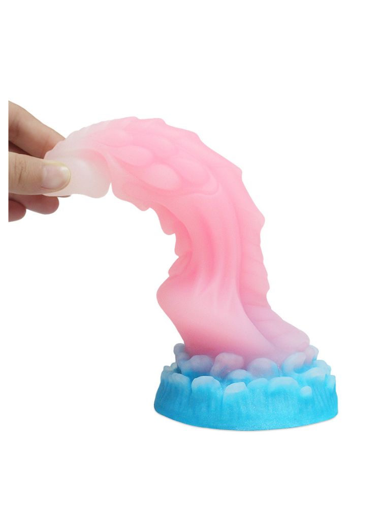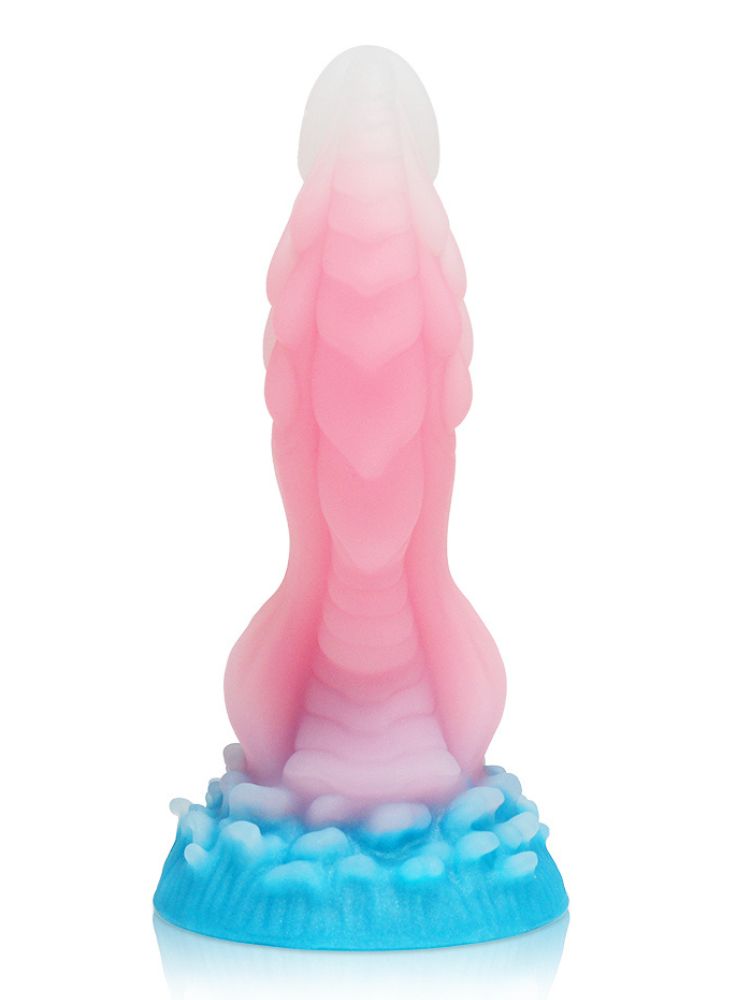 Dive into mythical delight with our enchanting 9.5-inch pastel glow in the dark dildo — designed to spark your imagination and leave your body tingling with pleasure. Its dreamy pink and white gradient melts into a vivid blue base, as if it’s been plucked straight from an oceanic realm. The shaft is covered in scale-like ridges and rippling textures that feel sensational with every glide and thrust. The rounded head slides in smoothly, while the thick body and pronounced details press all the right spots for breath-taking internal play.