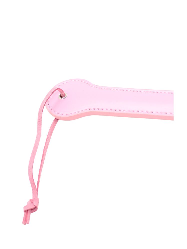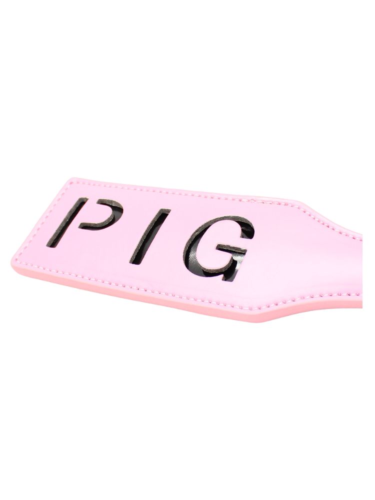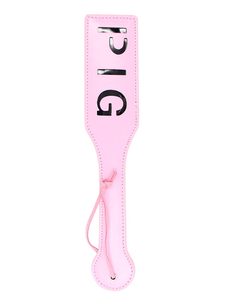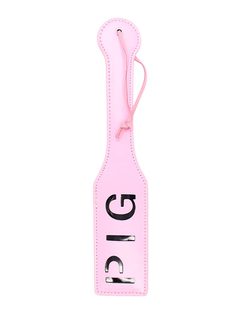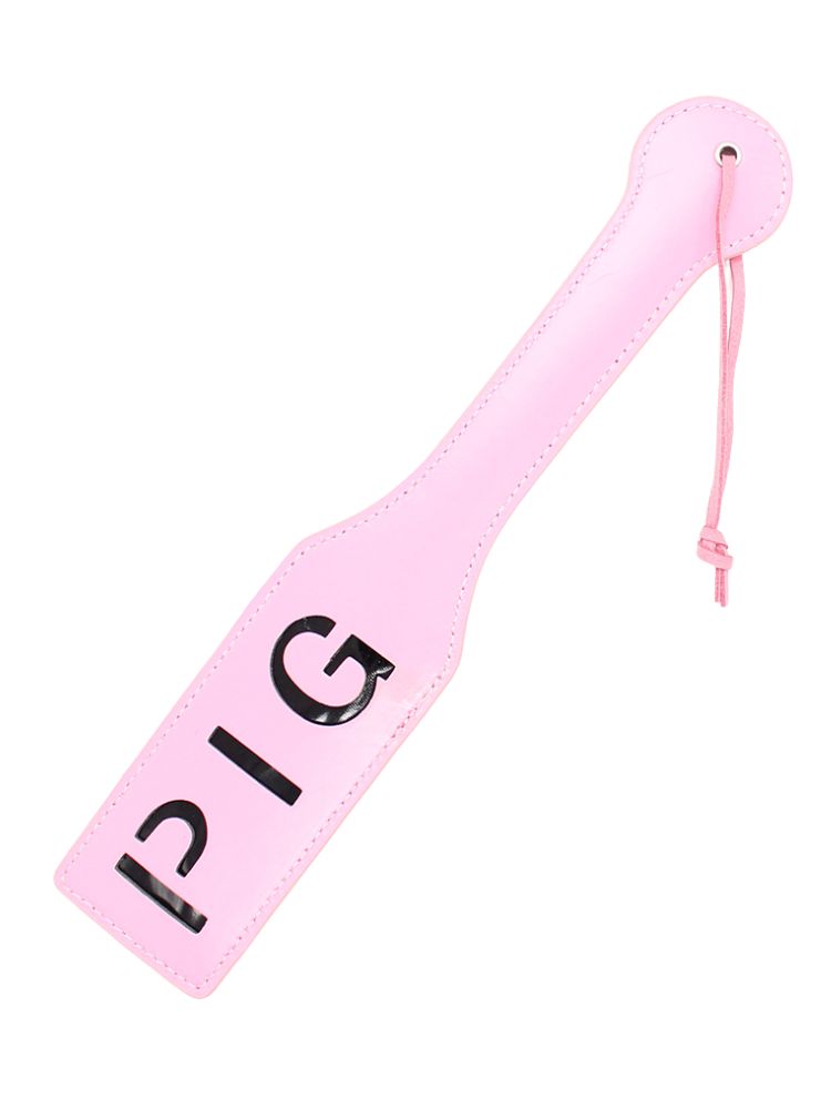 Make a bold statement with every spank using this cheeky pink paddle that leaves a lasting impression—literally. The word PIG is cut into the surface, designed to brand your sub (temporarily!) with a playful mark of affection and dominance. Crafted from glossy pink faux leather, this impact toy is as cute as it is commanding. Whether you’re new to spanking or seasoned in power play, the firm yet flexible body of this paddle ensures satisfying slaps with minimal effort.