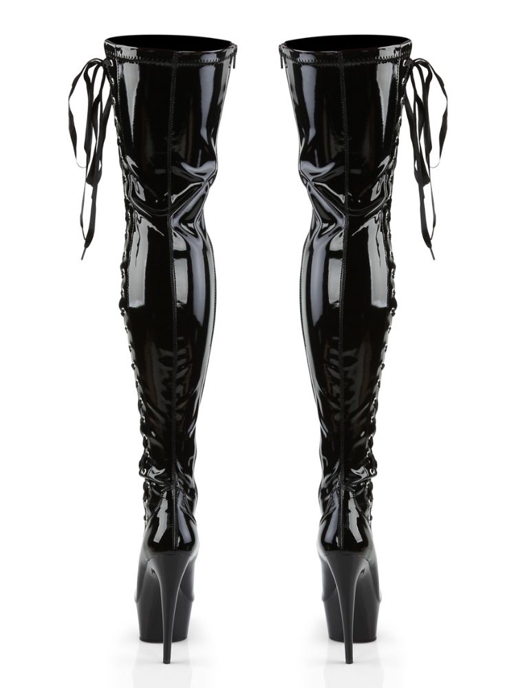 Unleash your inner vixen with the Pleaser Delight 6-Inch Platform Thigh-High Boots, designed for those who love to take charge and command attention. Whether you’re dressing up for an intimate night, stepping into your role as a dominatrix, or performing on stage, these boots are the ultimate blend of sexy and empowering. Their glossy, thigh-high finish and corset-style lace-up design radiate confidence, making them a must-have for anyone who loves bold, daring looks.