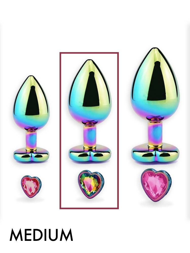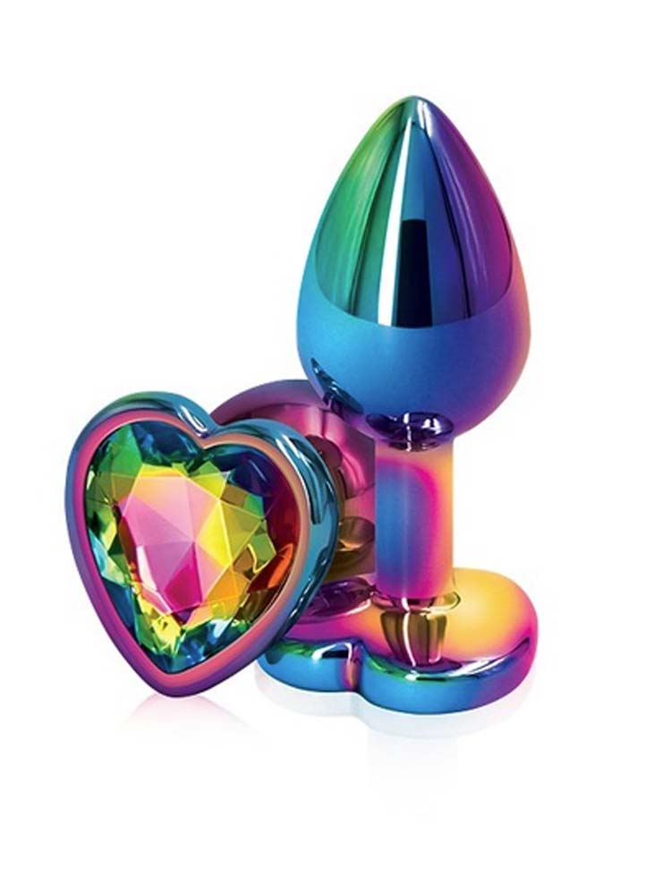 Rainbow Butt Plug with Clear Faux Jewel – Medium 3.2 Inch