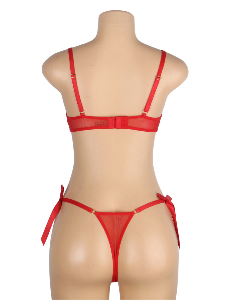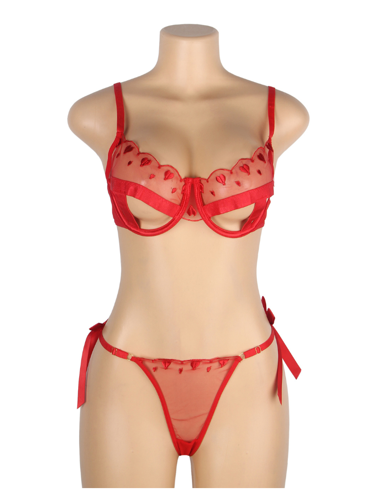 Red Embroidered Heart Lingerie Set