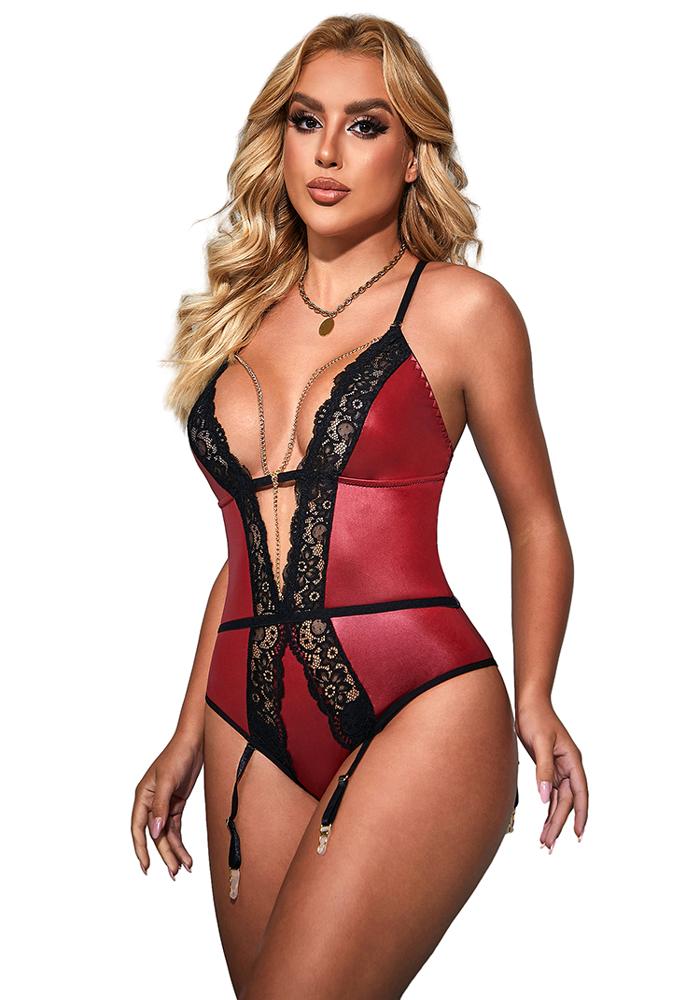 Red Lace Bodysuit with Garter Clips