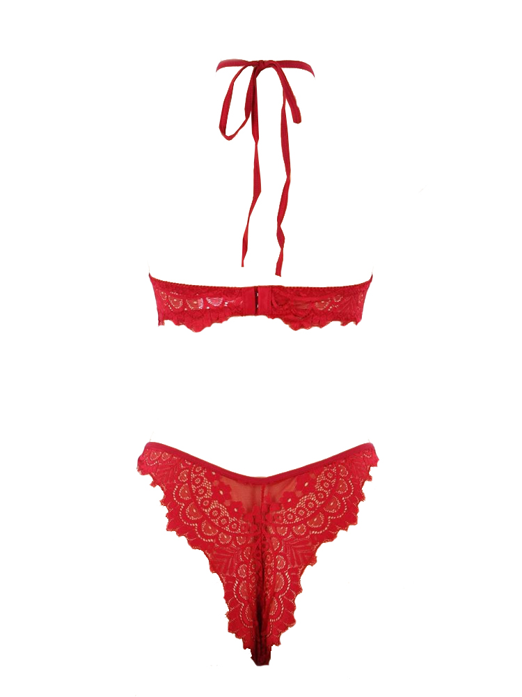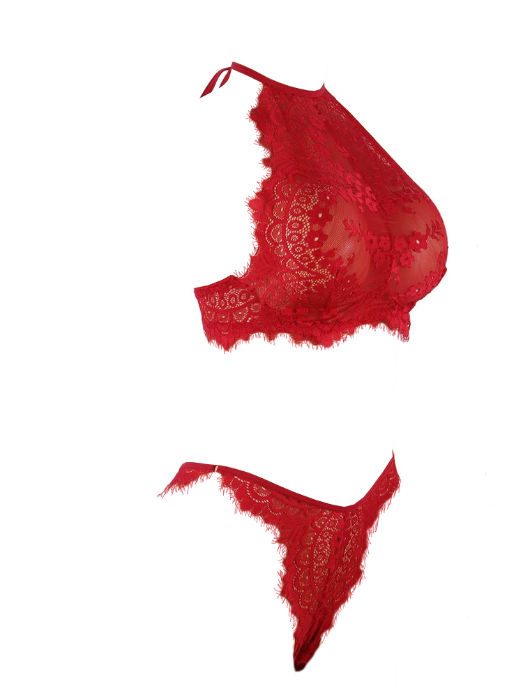 Red Lace Lingerie Bra Set