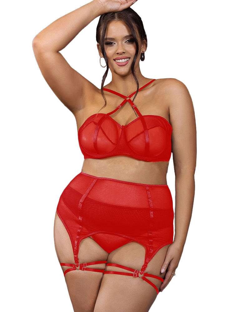 Red Mesh Garter Set
