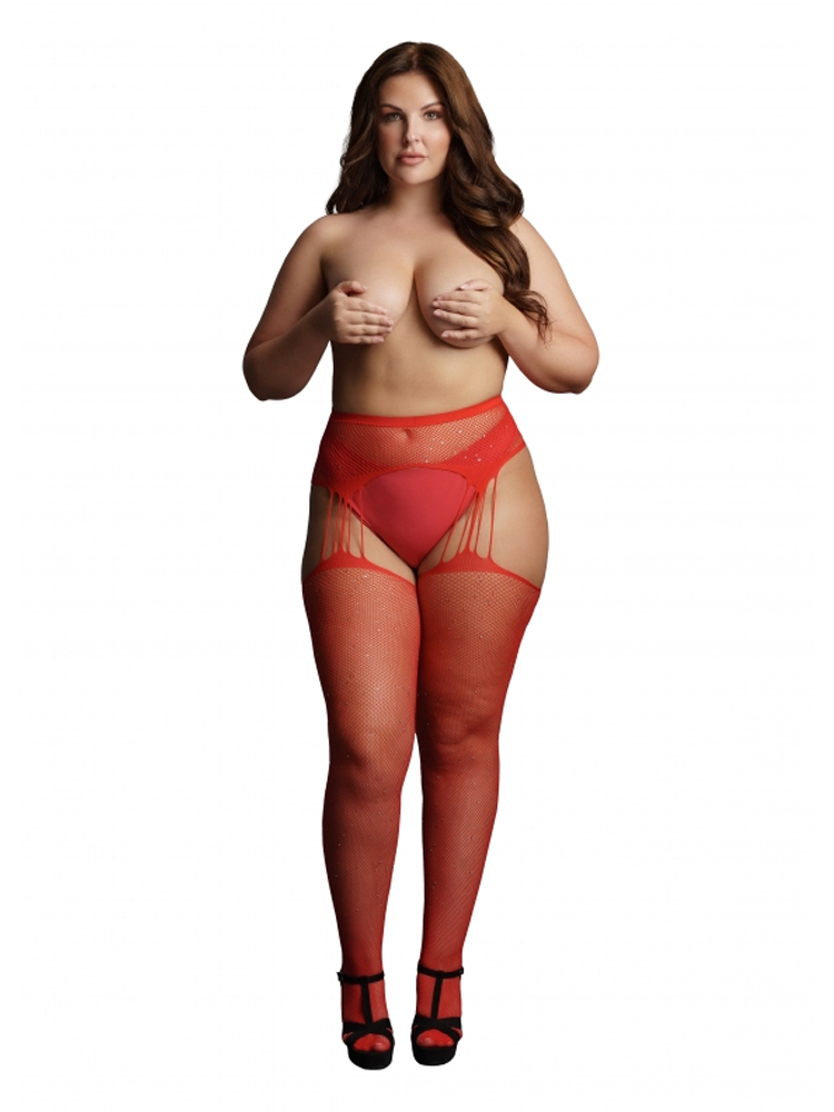 Red Rhinestone Suspender Stockings